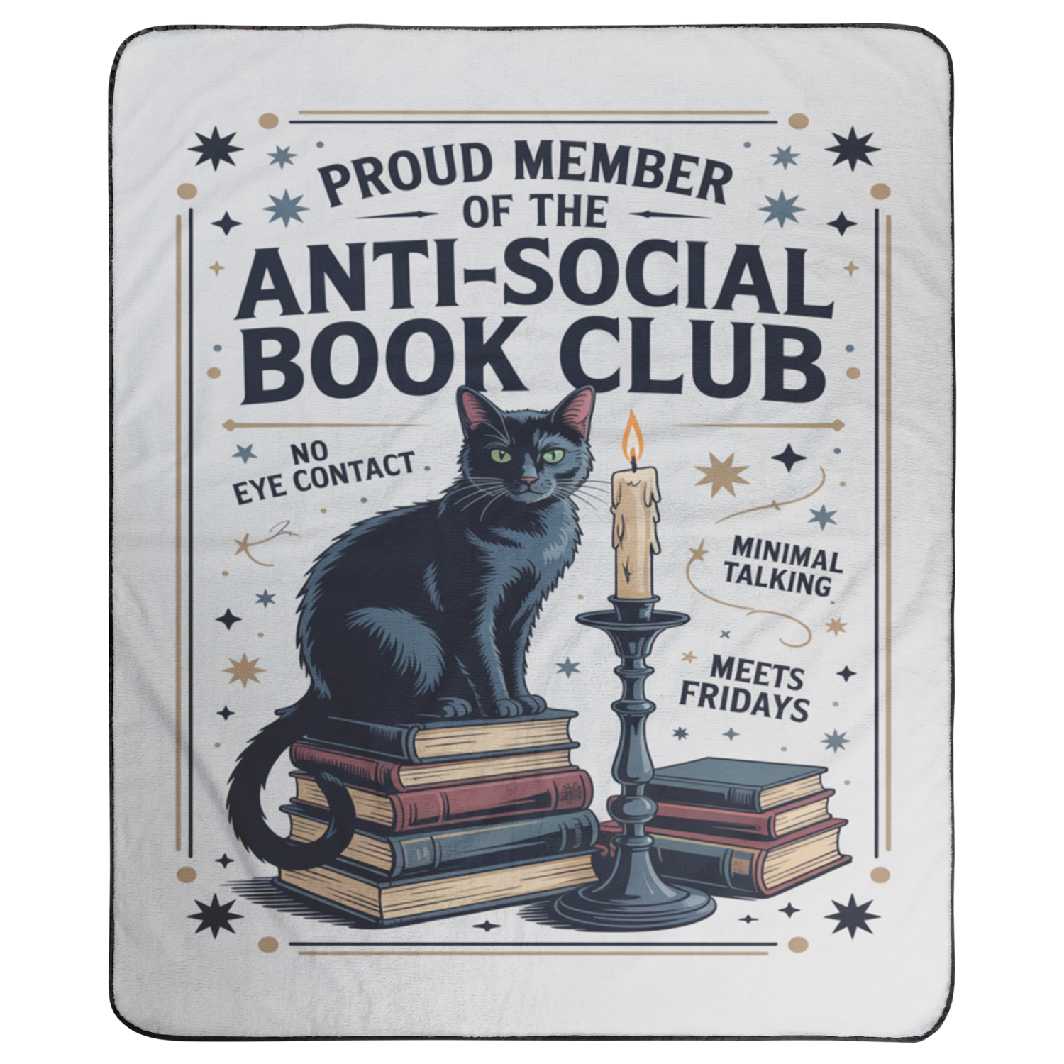 Crafted from a soft yet durable cotton-polyester blend, the Anti-Social Book Club Blanket wraps you in warmth, personality, and just the right amount of attitude—whether you’re curled up with a good book, dodging small talk, or braving the bleachers.