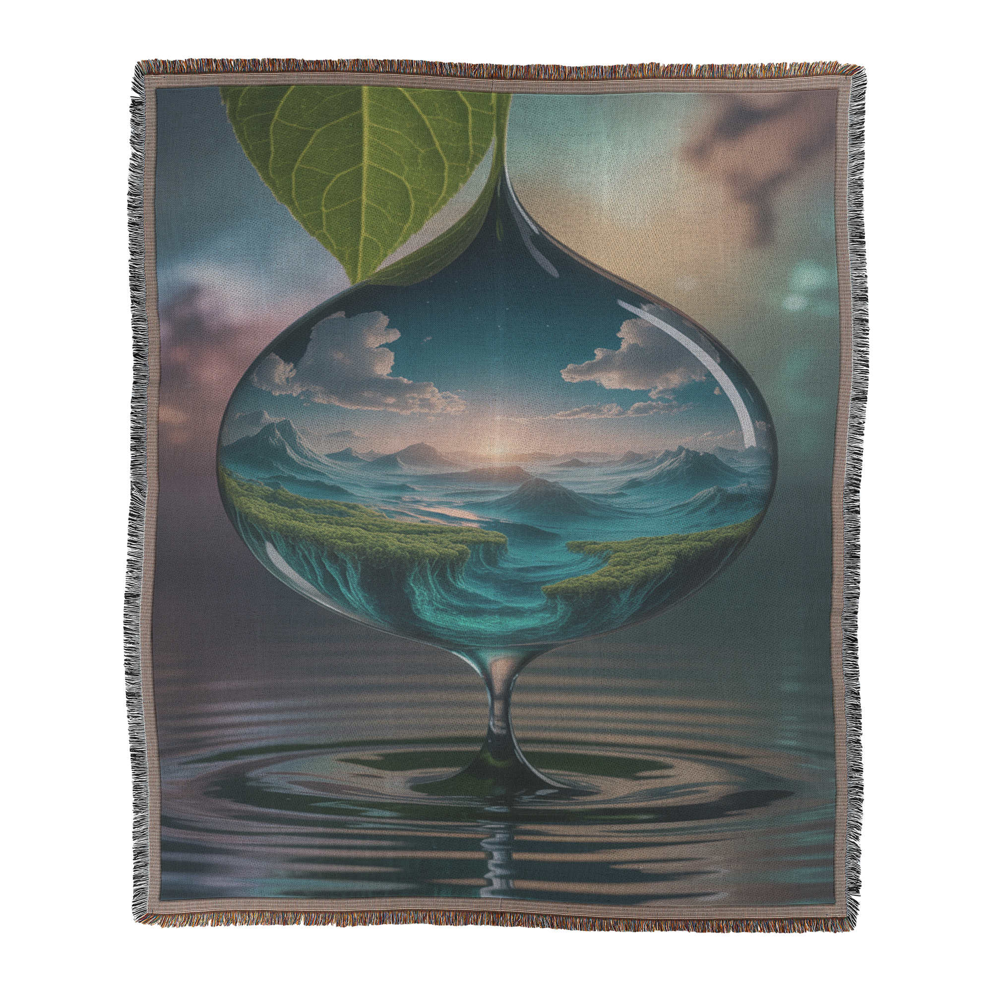 Fall in love with the serene beauty of our breathtaking woven throw blanket, where comfort meets nature’s quiet magic. Showcasing a delicate dew drop reflecting an entire world—majestic mountains and winding rivers captured in a single, glistening moment—this design invites you to pause, breathe, and dream. Woven from a perfectly balanced blend of cotton and polyester yarns, it offers lasting durability and a sumptuously soft feel you’ll want to cozy up with every day. Finished with playful fringed trim, this blanket is more than functional—it’s a work of art. Whether you’re settling in for a peaceful evening or adding a calming, nature-inspired accent to your space, this throw is perfect for those who find beauty in the little things and comfort in the stillness.