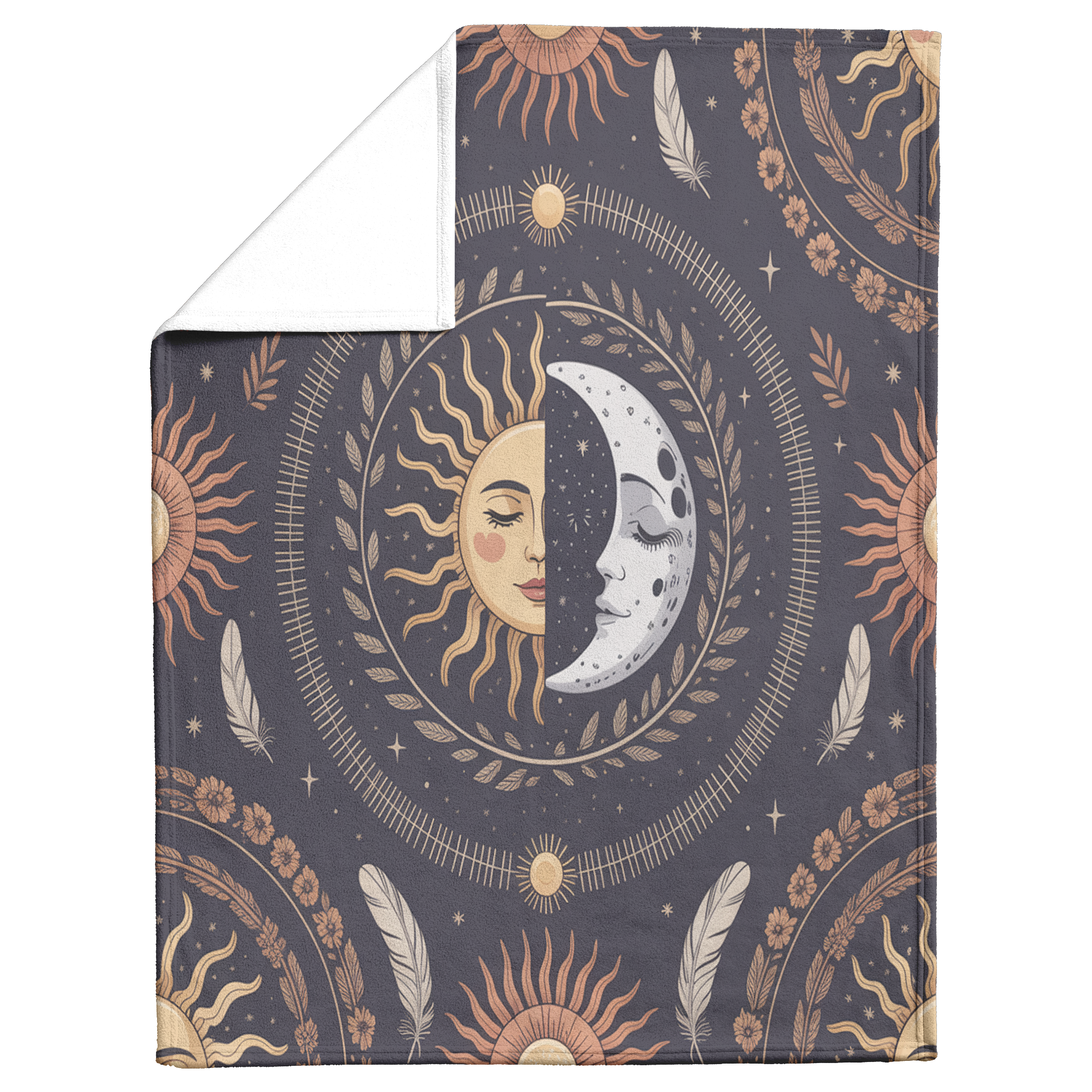 Wrap yourself in pure comfort with our irresistibly charming fleece blanket. Available in two luxurious options—a lightweight, pill-free microfiber fleece that’s supremely soft, warm, and cozy, or a plush sherpa-backed fleece that offers ultimate warmth for the coldest nights—this blanket is made for year-round comfort. The dreamy design, featuring the sun and moon entwined in celestial harmony, brings a sense of wonder to any space. Perfect for movie nights, lazy mornings, or adding a touch of stargazing magic to your home, it’s the perfect blend of warmth, style, and celestial charm.