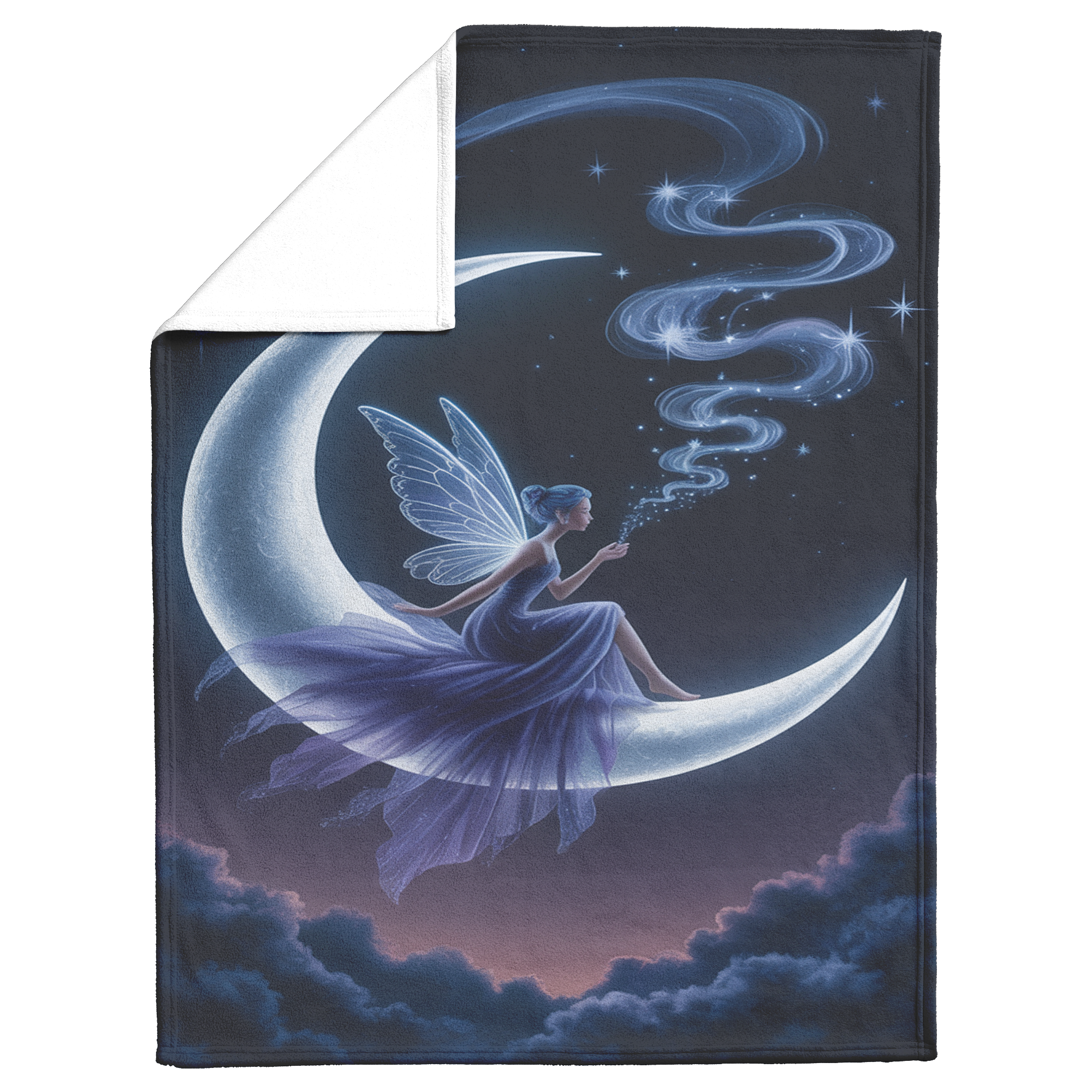Drift into a world of wonder with our enchanting fleece blanket, featuring a delicate fairy perched on a glowing crescent moon, gently blowing a trail of sparkling fairy dust wishes into the universe. This magical scene brings a sense of calm, imagination, and celestial charm to any space. Available in two cozy variations—a lightweight, pill-free microfiber fleece that’s soft, warm, and perfect for everyday use, and a sherpa-backed fleece that offers supreme softness and extra warmth for the coldest nights. Whether you’re settling in for a movie marathon or adding a whimsical touch to your favorite nook, this blanket is more than just comfort—it’s a little piece of stardust made just for dreamers.