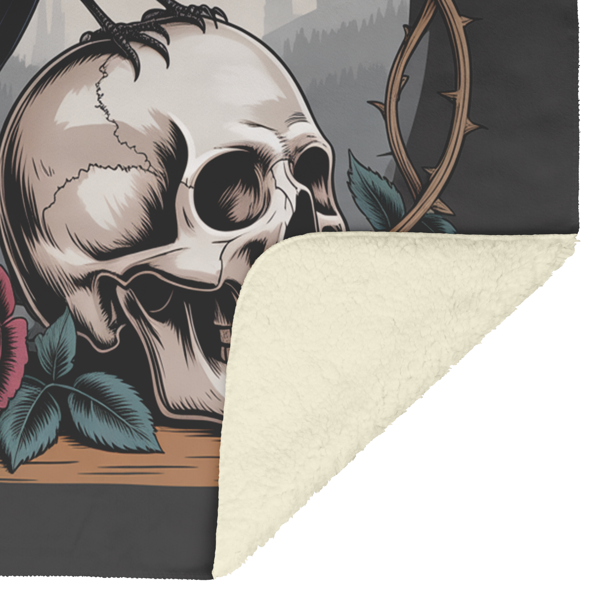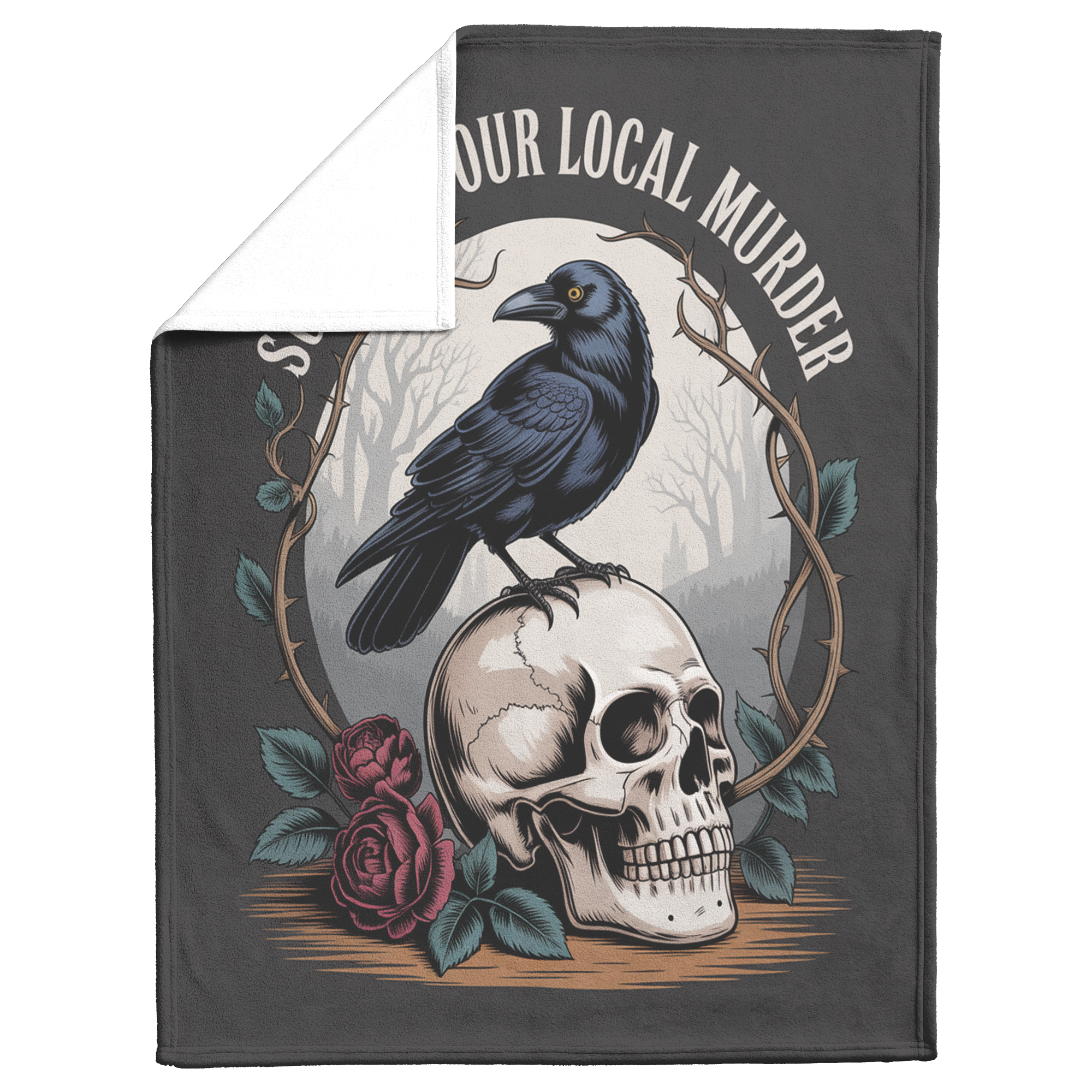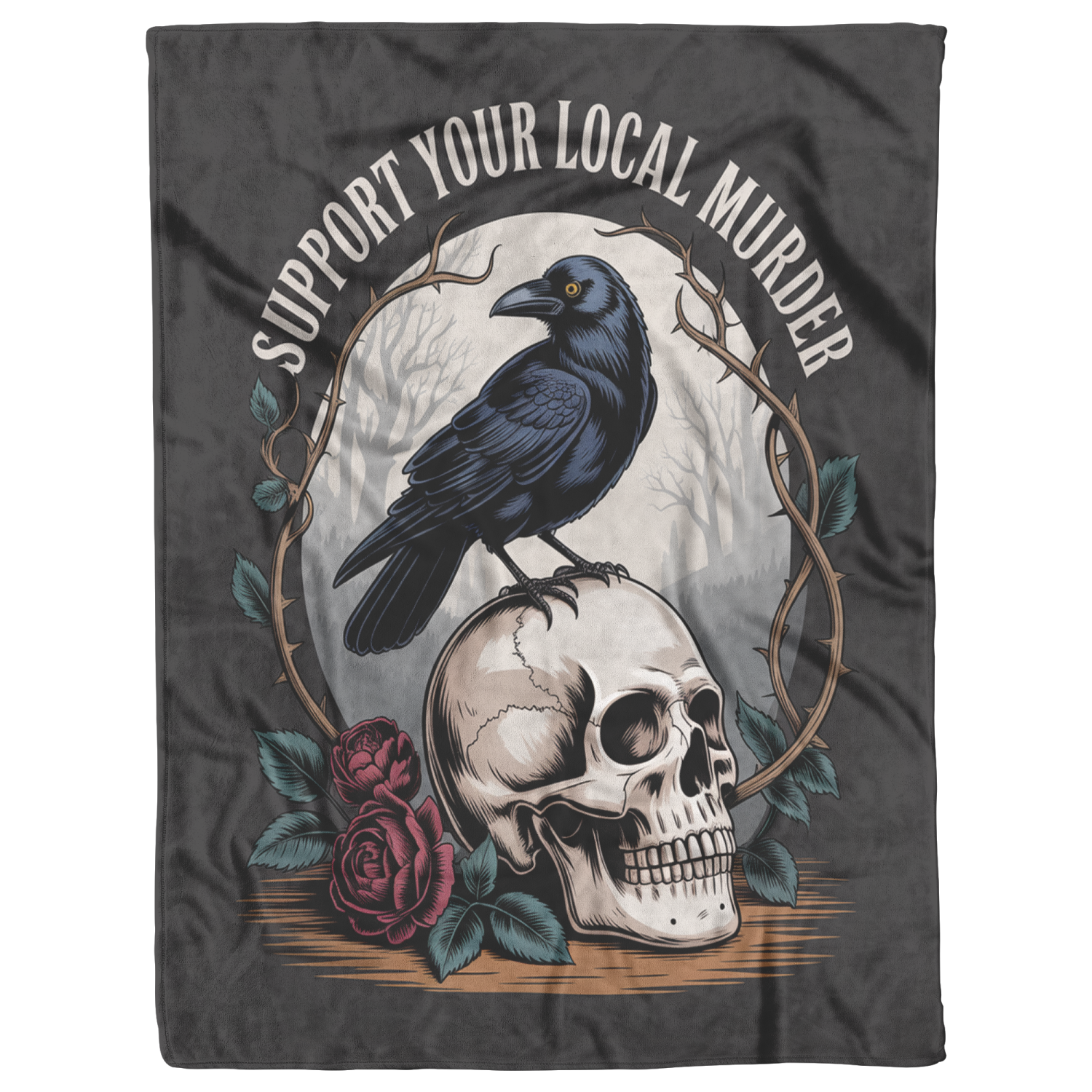 Fall head over heels for this delightfully dark and cozy fleece blanket—where comfort meets cleverness. Featuring a lone crow perched on a skull with the cheeky phrase “Support Your Local Murder,” this design delivers a perfect blend of macabre humor and gothic charm. Crafted for warmth and softness, this blanket comes in two ultra-cozy options: a lightweight, pill-free microfiber fleece that’s ideal for everyday snuggling, and a plush sherpa-backed fleece that offers extra comfort on the coldest nights. Whether you’re settling in for a spooky movie night or adding a bold statement to your space, this blanket is a must-have for those who like their comfort served with a little attitude—and a lot of crows.