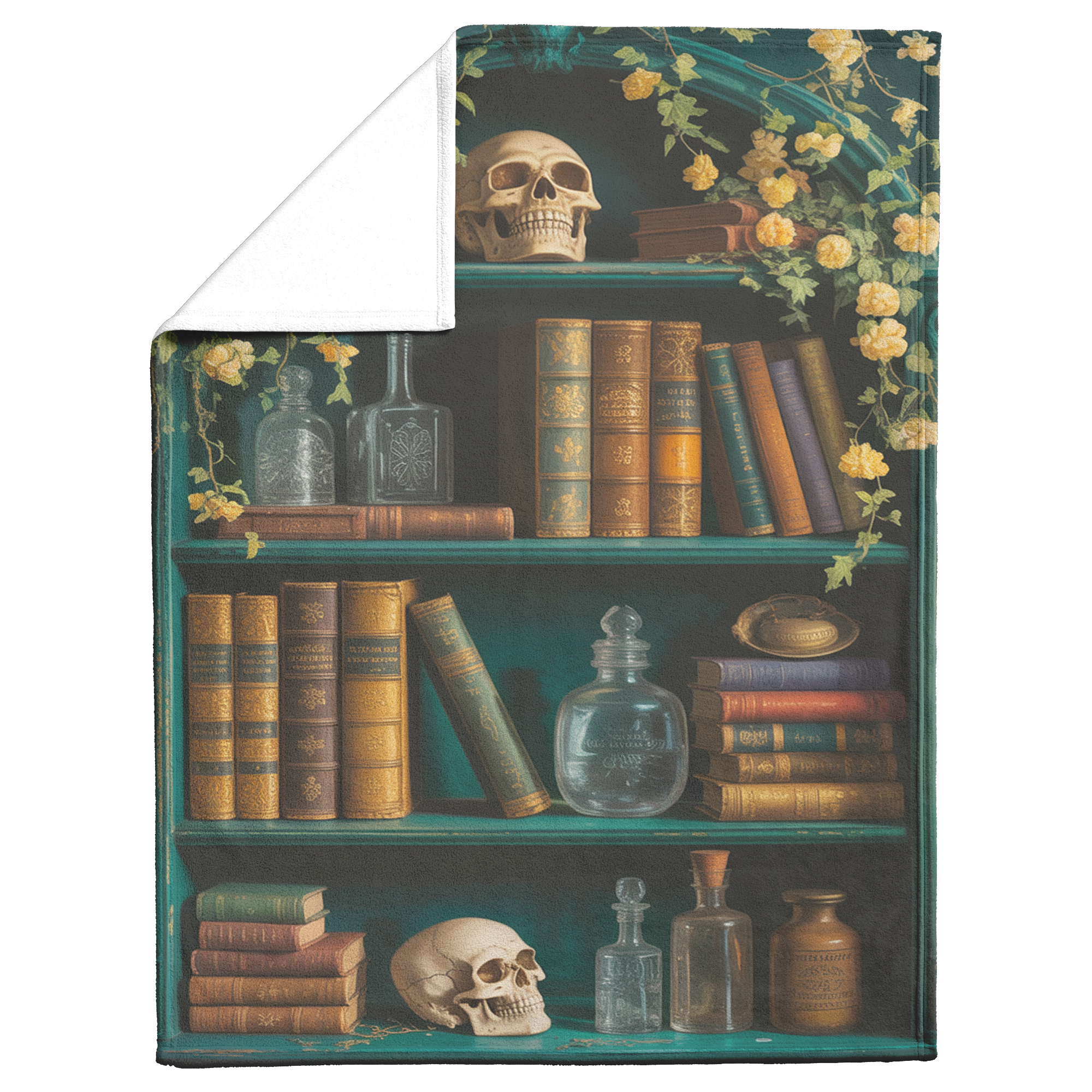 Inspired by the moody elegance of a forgotten study, this richly detailed design features aged tomes, ivy-draped shelves, potion bottles, and curious skulls—all conjuring an old-world atmosphere filled with arcane charm. Whether you’re a dark academia dreamer, a devoted book lover, or simply someone drawn to the mystical, this blanket brings a touch of the fantastical into your everyday.